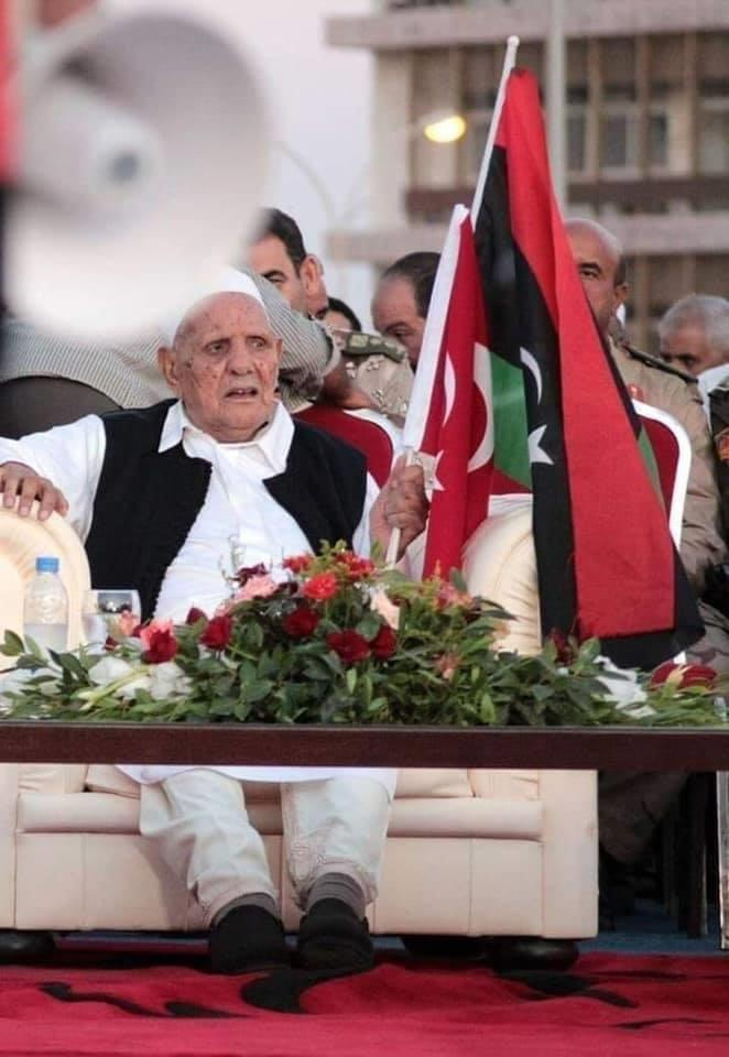 نشطاء يتداولون صور نجل الشهيد عمر المختار يرفع العلم الليبي والتركي libia